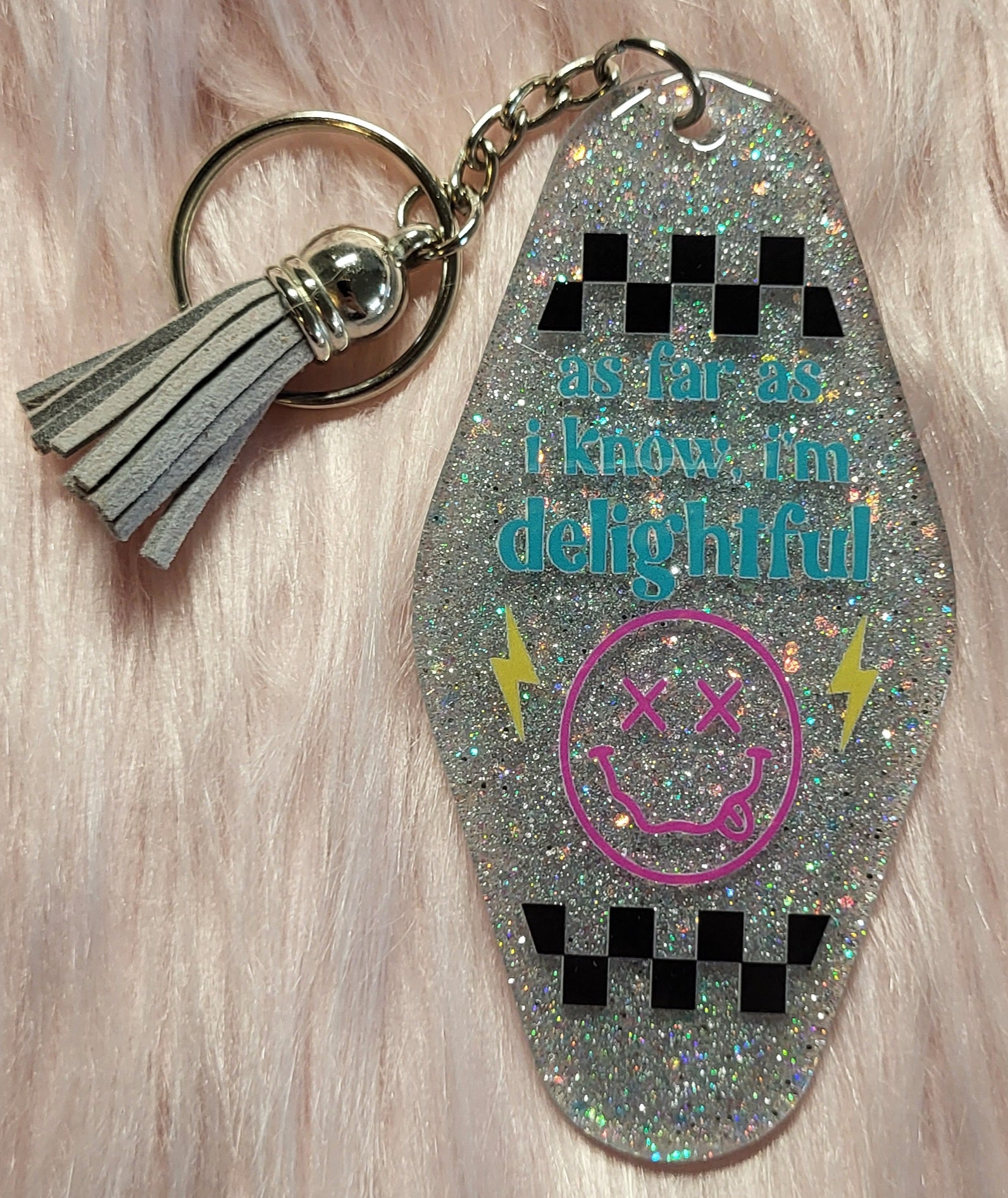 3.5" MOTEL KEYCHAIN - SILVER - AS FAR AS I KNOW I'M DELIGHTFUL